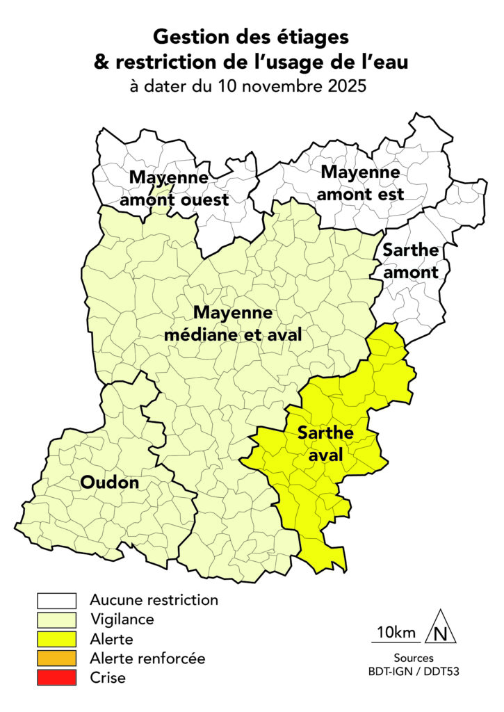 Au 10 novembre 2025, la Direction Départementale des Territoires (DDT) a communiqué une nouvelle évolution de la situation de l’étiage dans le département de la Mayenne.