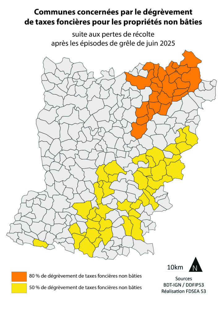 Le 23 juillet dernier, la FDSEA 53 et les JA 53 avaient écrit à la Préfète et au Directeur départemental des Finances publiques (DDFip) de la Mayenne. Après les violents épisodes de grêle de juin dernier, les syndicats demandaient la mise en oeuvre de la procédure de dégrèvement de la taxe foncière sur les propriétés non bâties pour pertes de récoltes. Tombé cette semaine, le retour de la DDFip est favorable.