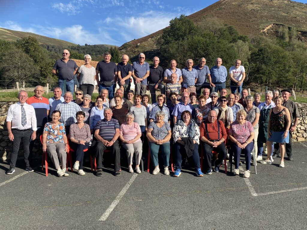 Photo du troisième groupes d’anciens exploitants de la FDSEA 53 qui ont à leur tour pu profiter d’une semaine à la découverte du Pays basque. Biarritz, Train de la Rhune, ferme aquacole La Truite de Banka, Espagne, élevage de porcs basques kintoa de Pierre Oteiza… Un programme chargé, qui a ravi les participants (50 par groupe).